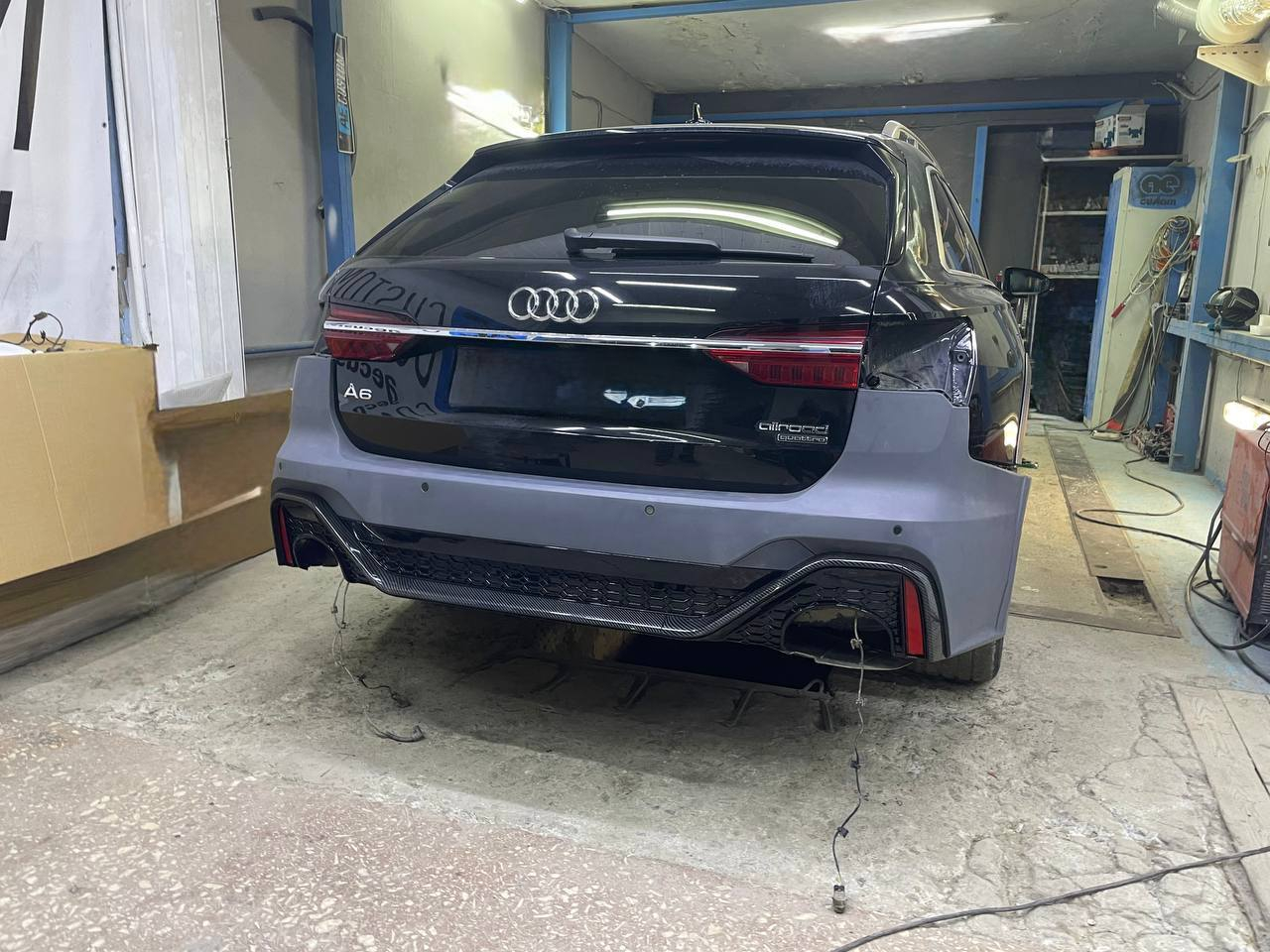 Спойлер и диффузор установлены — но без правильных насадок картина не полная. Стандартные хромированные «трубочки» не сочетаются с агрессивным диффузором. Поэтому мы всегда рекомендуем менять насадки на выхлоп в комплекте.